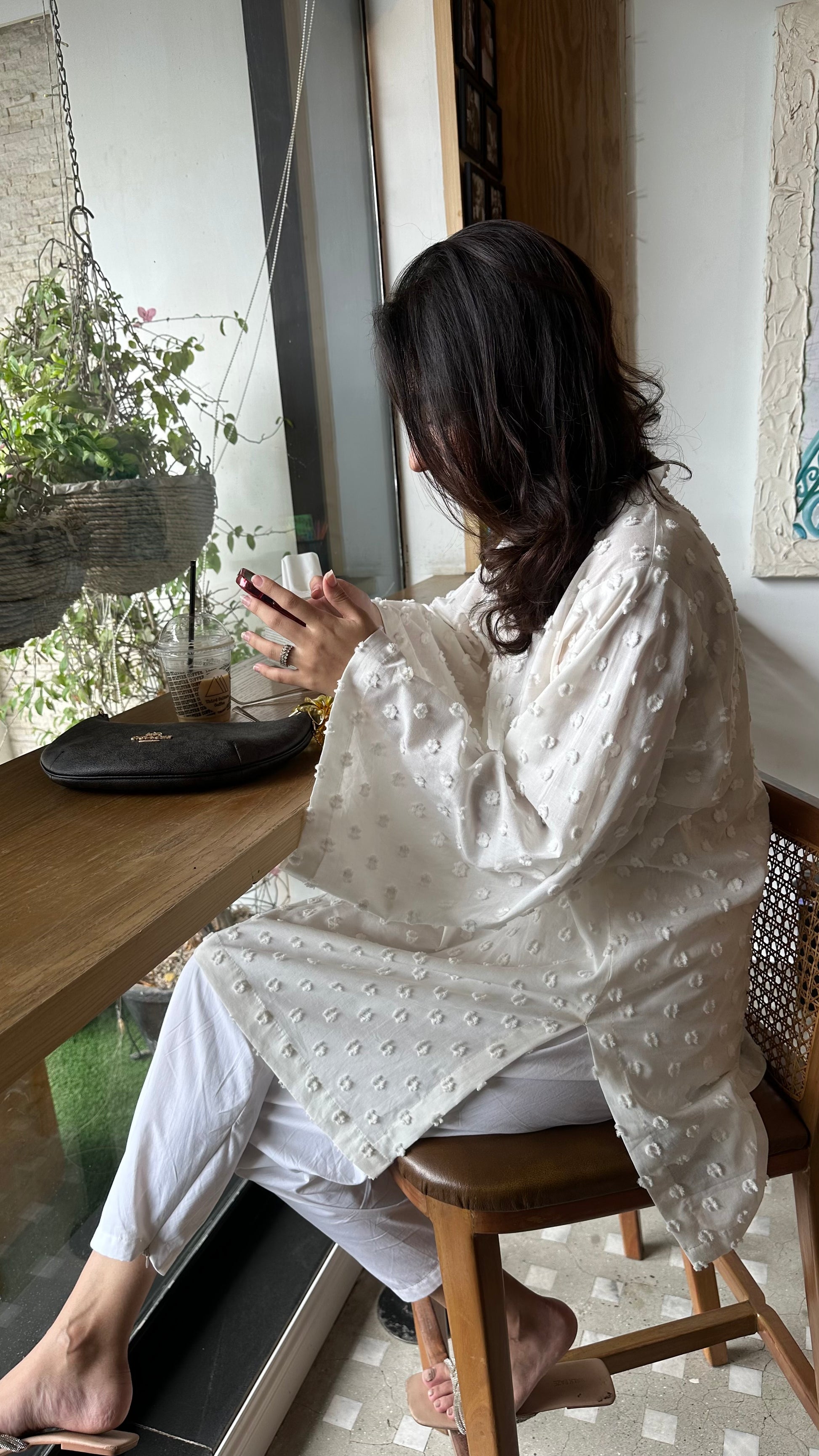 Linen brochia kurta with khari shalwar