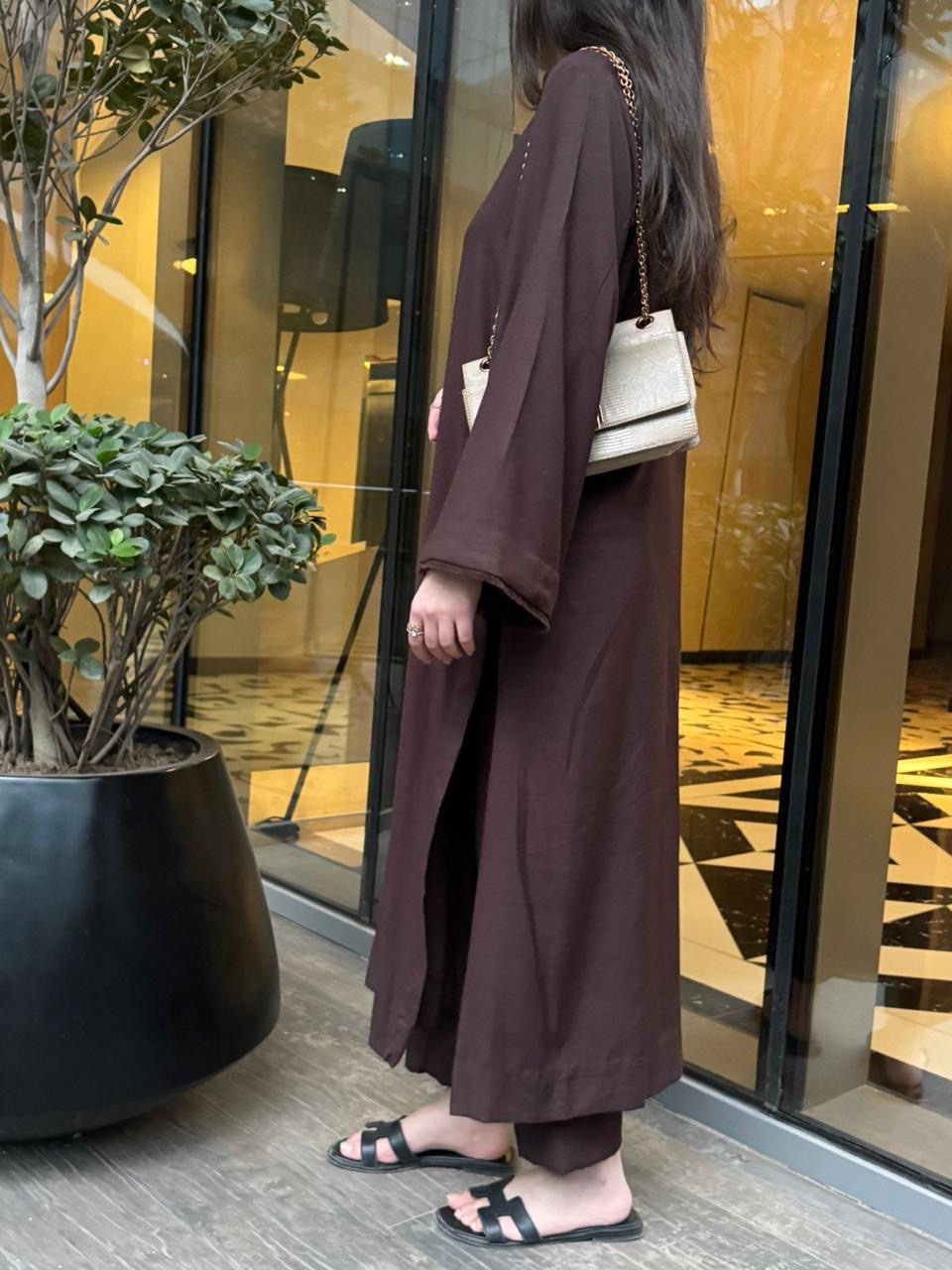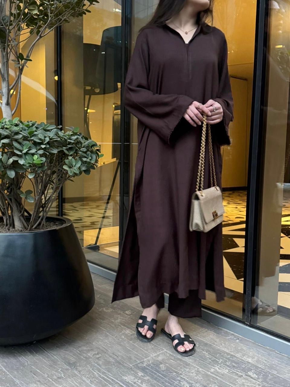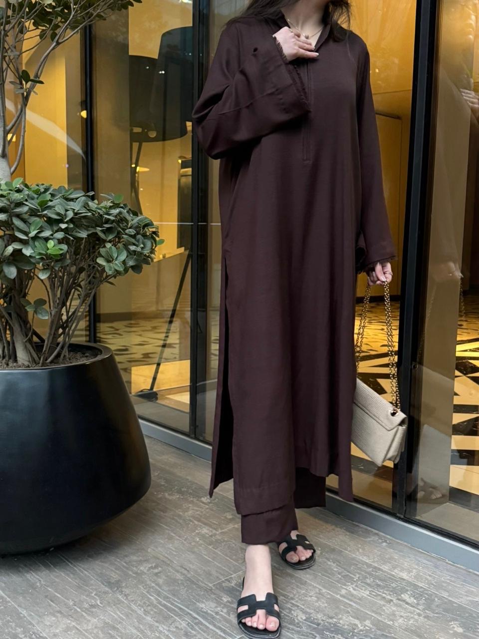 Flowy silhouette paired with tailored straight pants — an effortless blend of comfort and sophistication, perfect for days when you want to look polished with no effort.