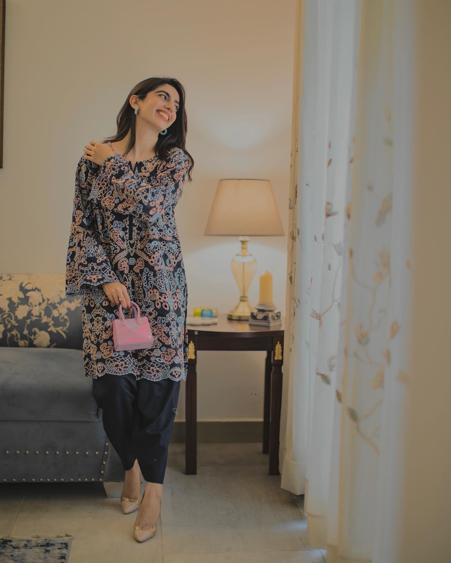 looking absolutely stunning in our Midnight’ 2 piece embroidered outfit